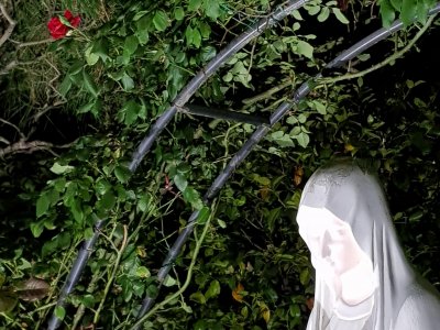 성모상에. 드디어 장미가
